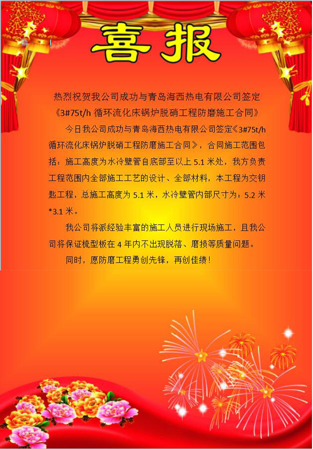 热烈祝贺我公司成功与青岛海西热电有限公司签定合同