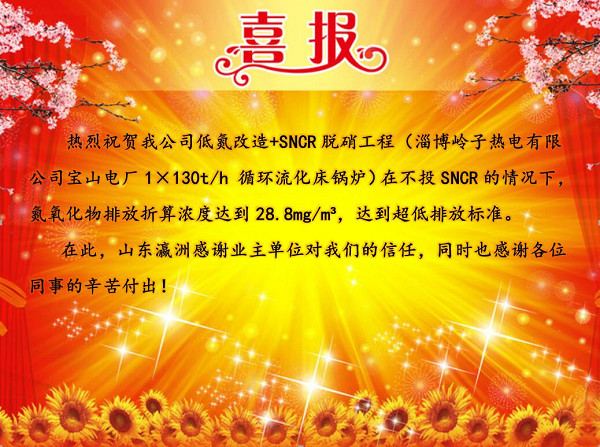 热烈祝贺我公司低氮改造+SNCR脱硝工程达到超低排放标准