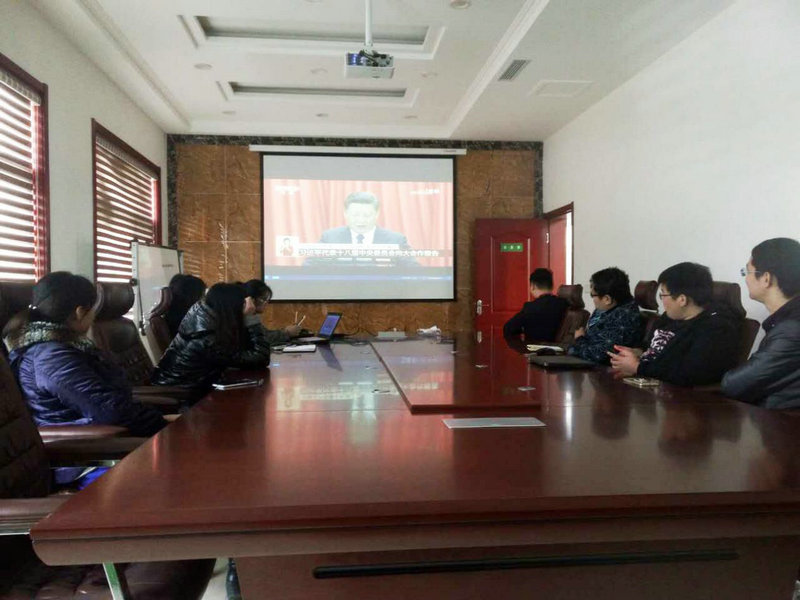 位于淄博市周村区王村宝山工业园的山东瀛洲节能环保科技有限公司,一大早,公司员工齐聚公司会议室,守候观看十九大开幕直播。